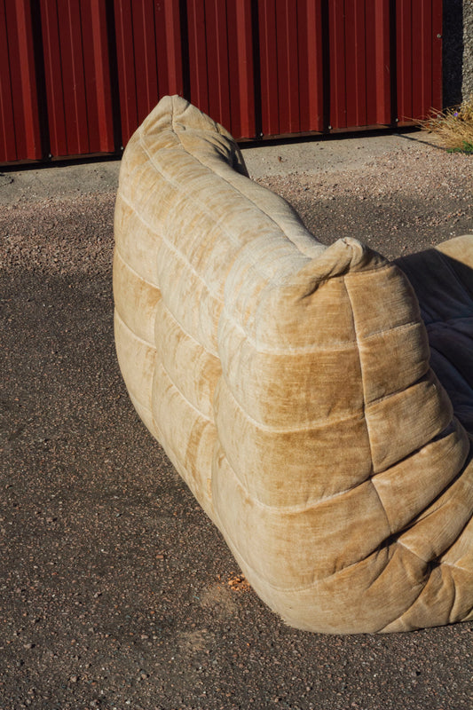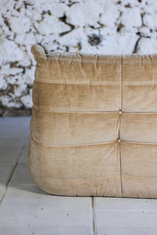 Canapé Togo 2 places en velours beige par Michel Ducaroy, LIGNE ROSET, 1973