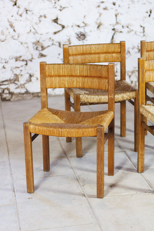 4 chaises en paille "Week-end" par Pierre Gauthier Delaye, 1950