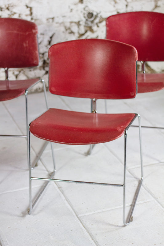 4 chaises rouges Max Stacker pour Steelcase, 1970