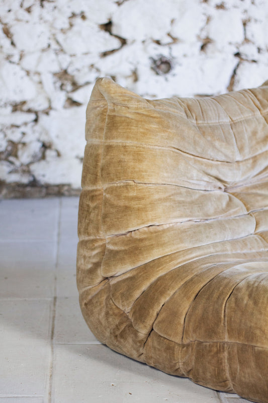 Chauffeuse 1 place Togo velours beige par Michel Ducaroy pour Ligne Roset