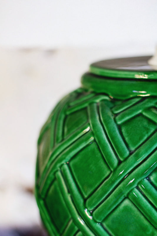 Sold outLampe en faïence verte tressée