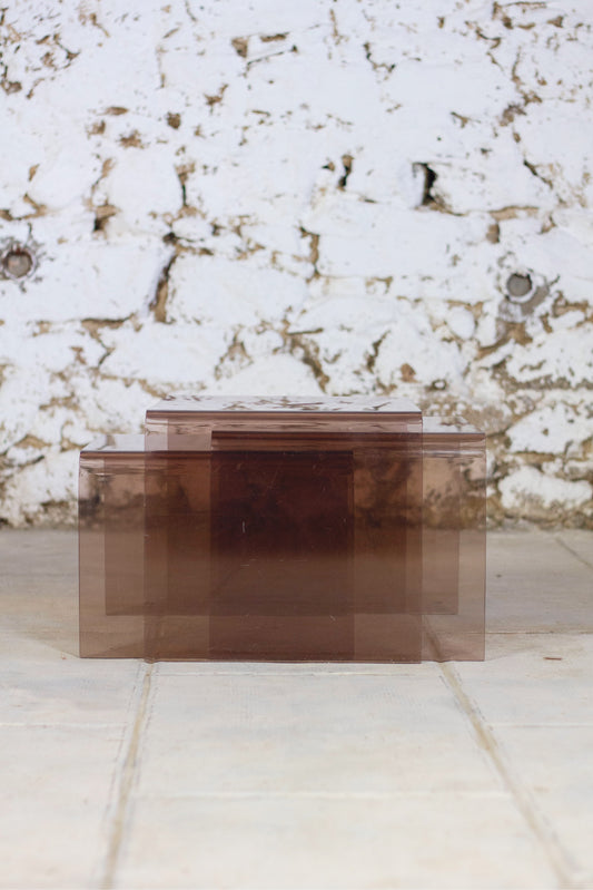 Trois tables gigognes en plexiglas fumé, 1970