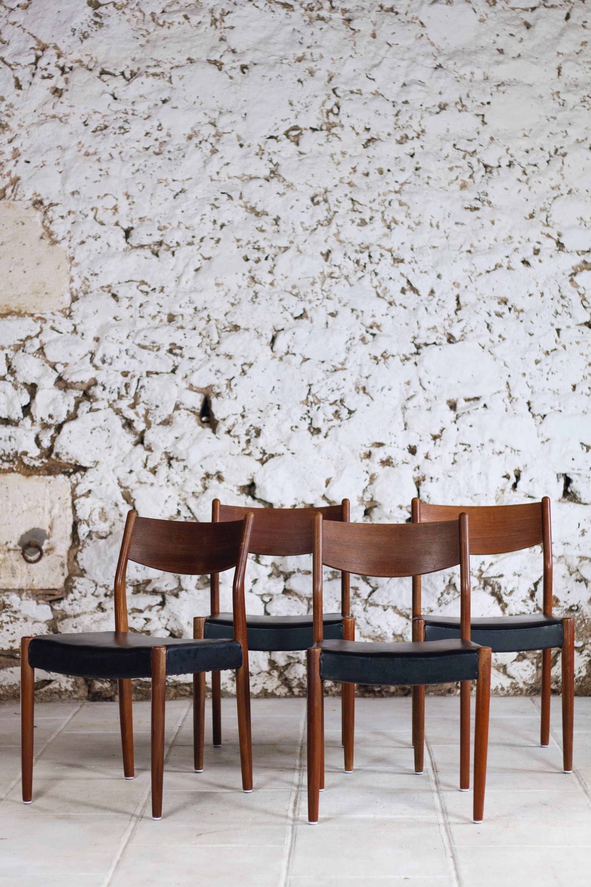 4 chaises scandinaves Fristho Franeker teck et skaï, 1960