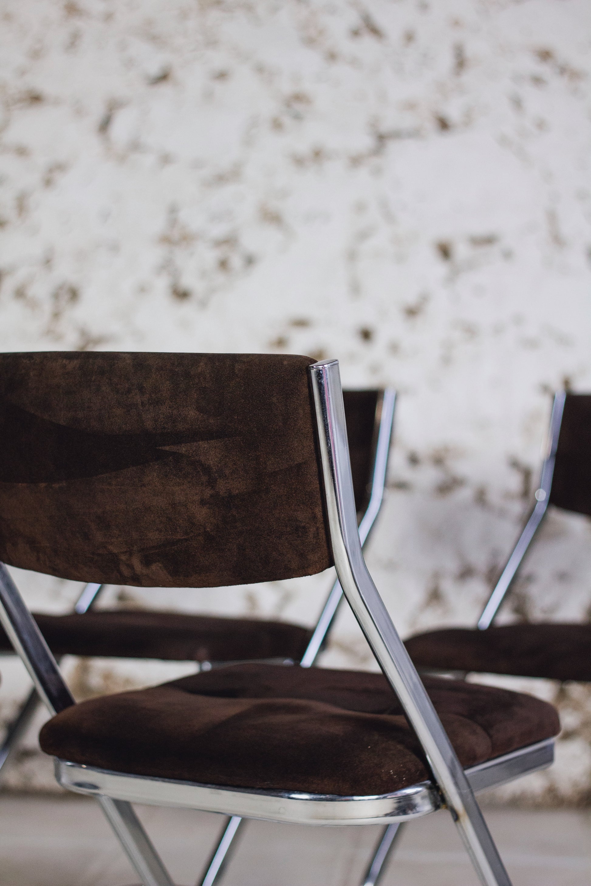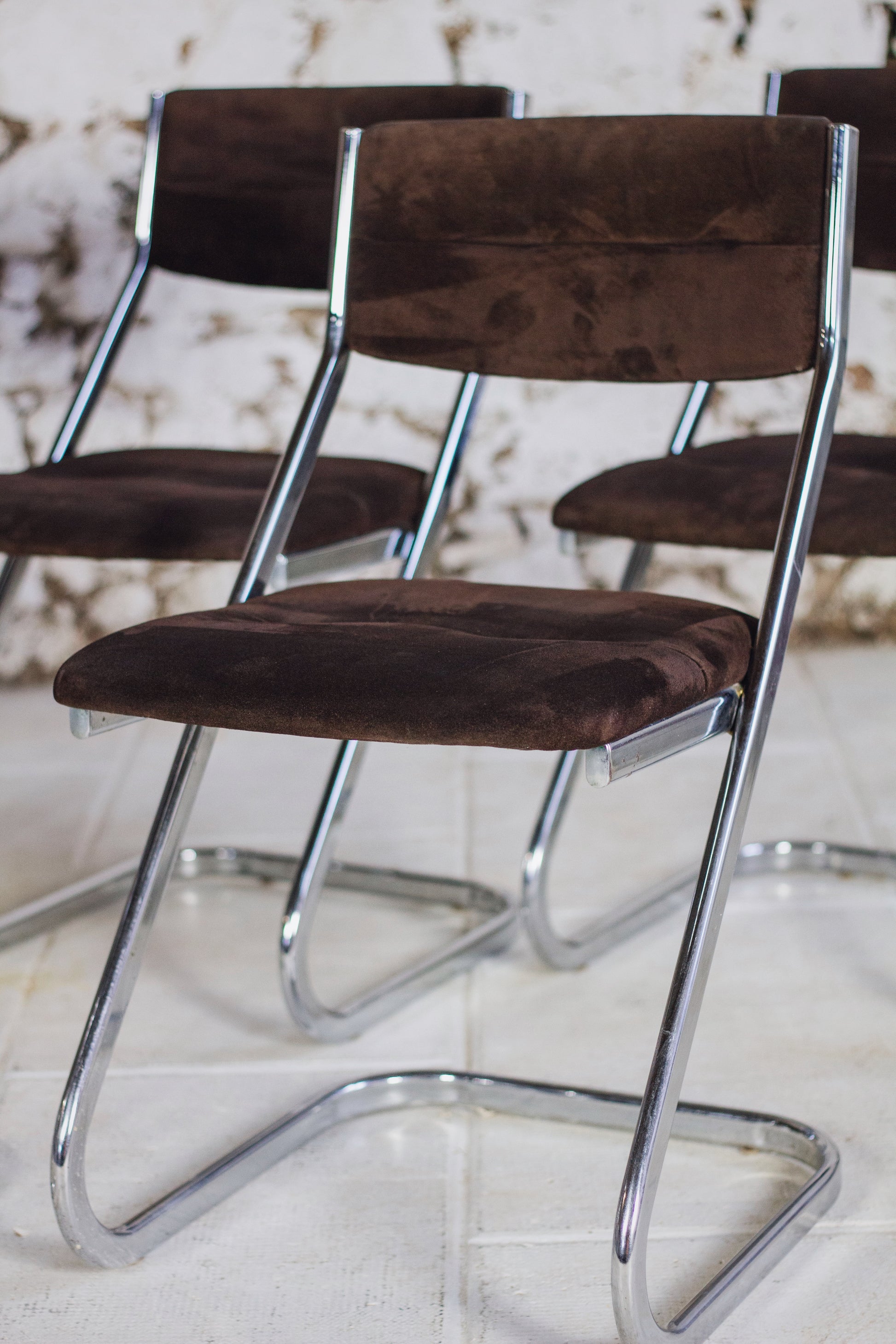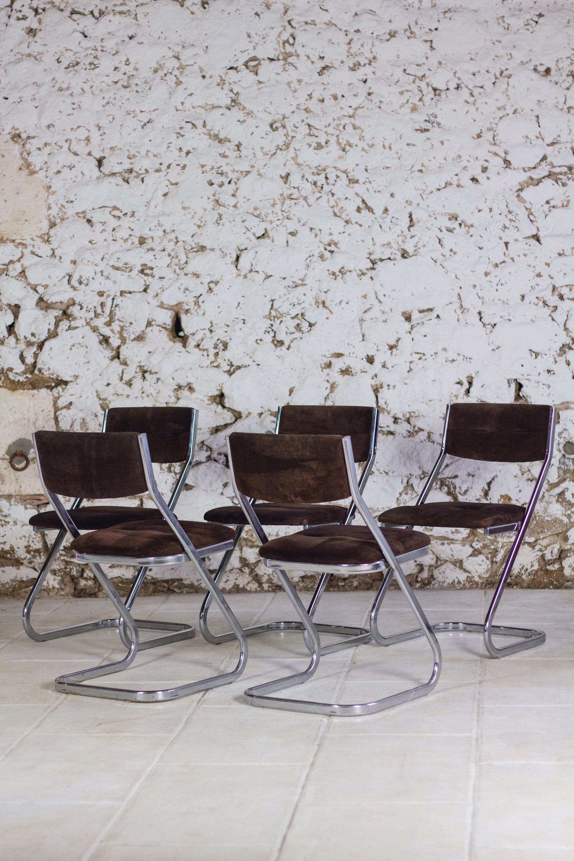 5 chaises tubulaires en daim et chrome Roche Bobois, 1970