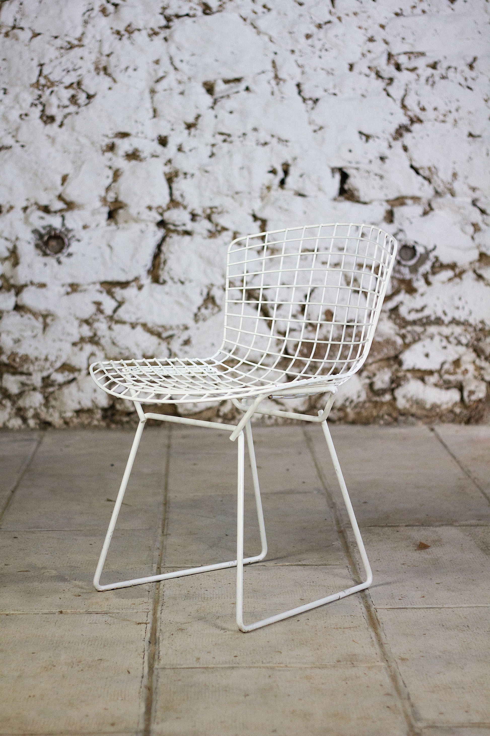 La Chaise Wire, conçue par Harry Bertoia pour Knoll, est une œuvre emblématique du design moderne. Réalisée en 1952, cette pièce innovante est composée d'une structure en maille de fils d'acier supportée par de fins pieds métalliques. La fabrication manuelle originale impliquait que chaque fil était soigneusement cintré à la main avant d'être soudé et chromé, mettant en lumière l'approche artisanale de Bertoia dans le design.