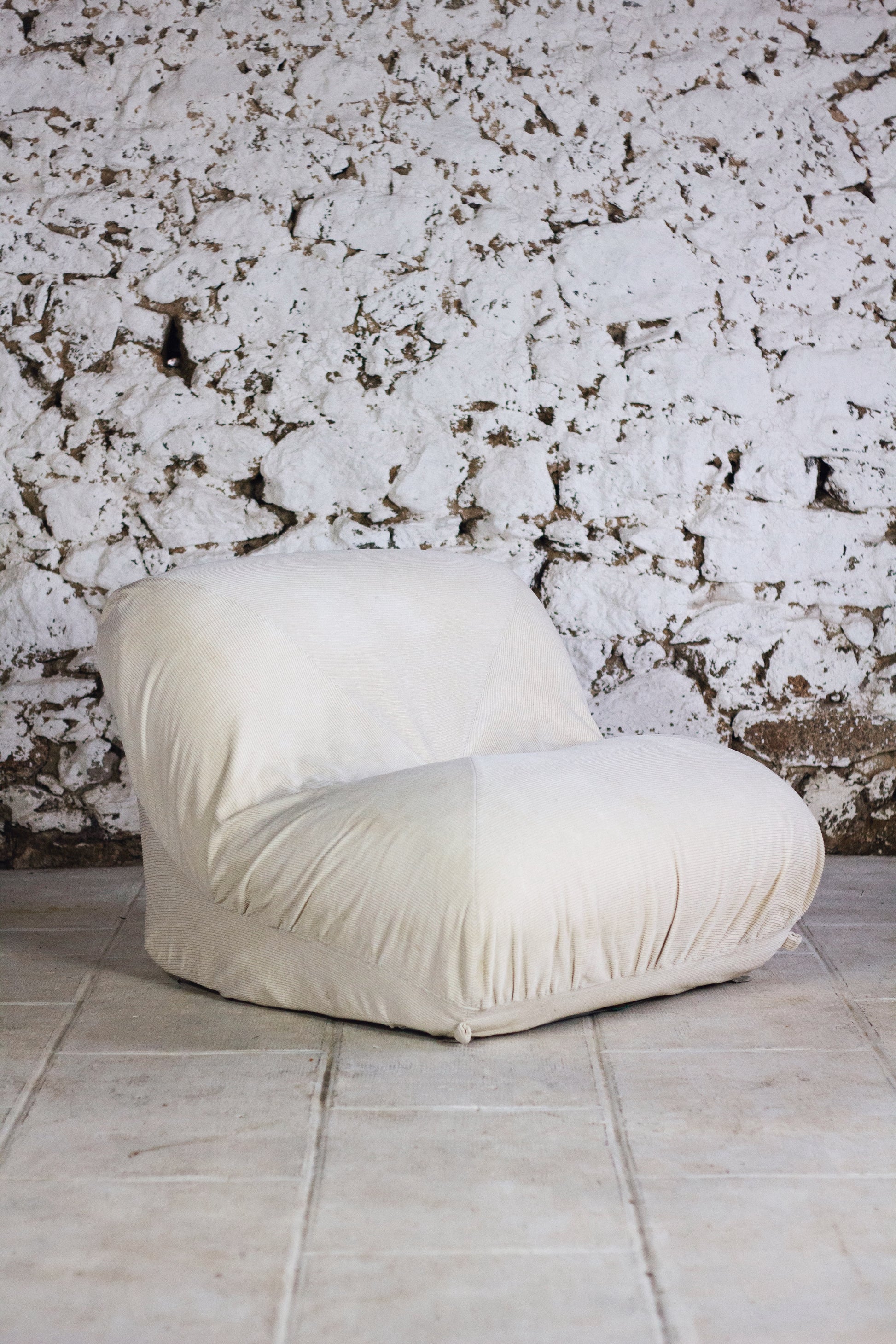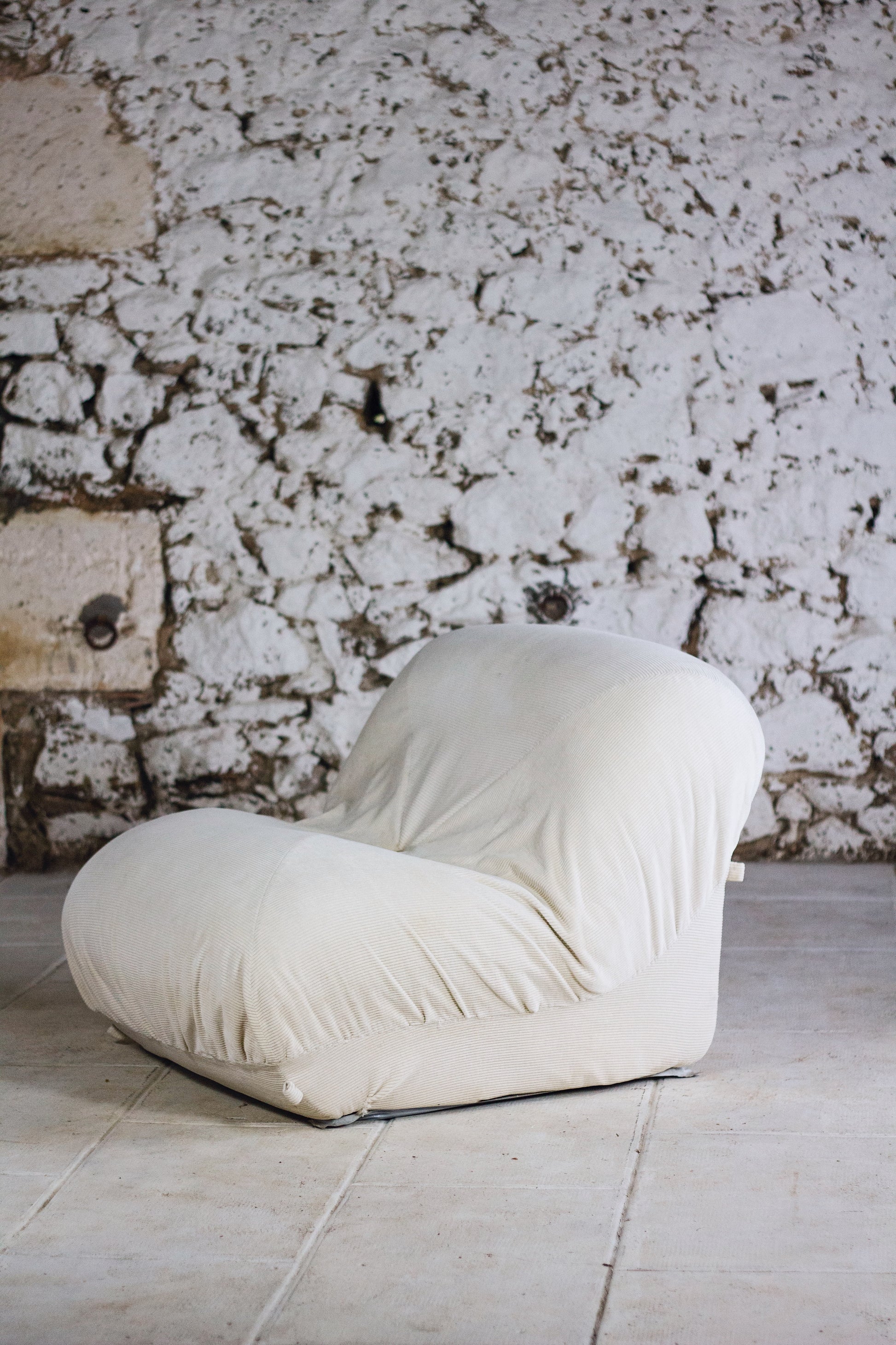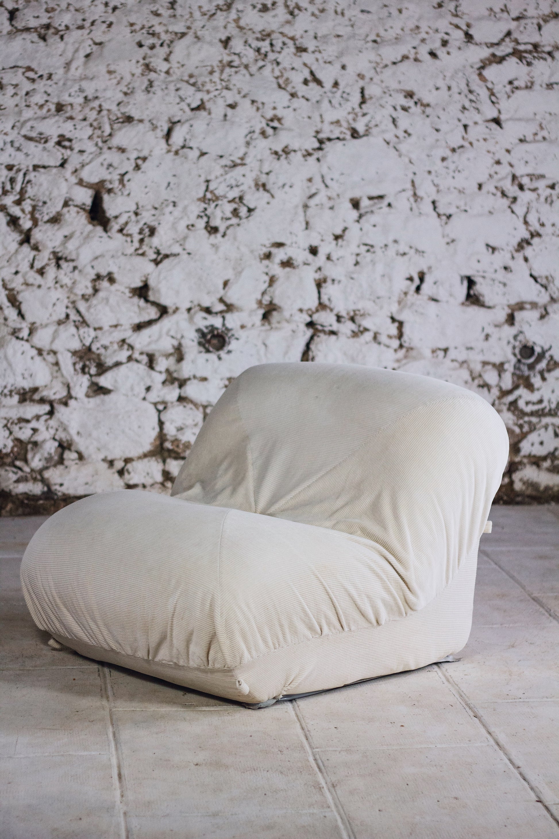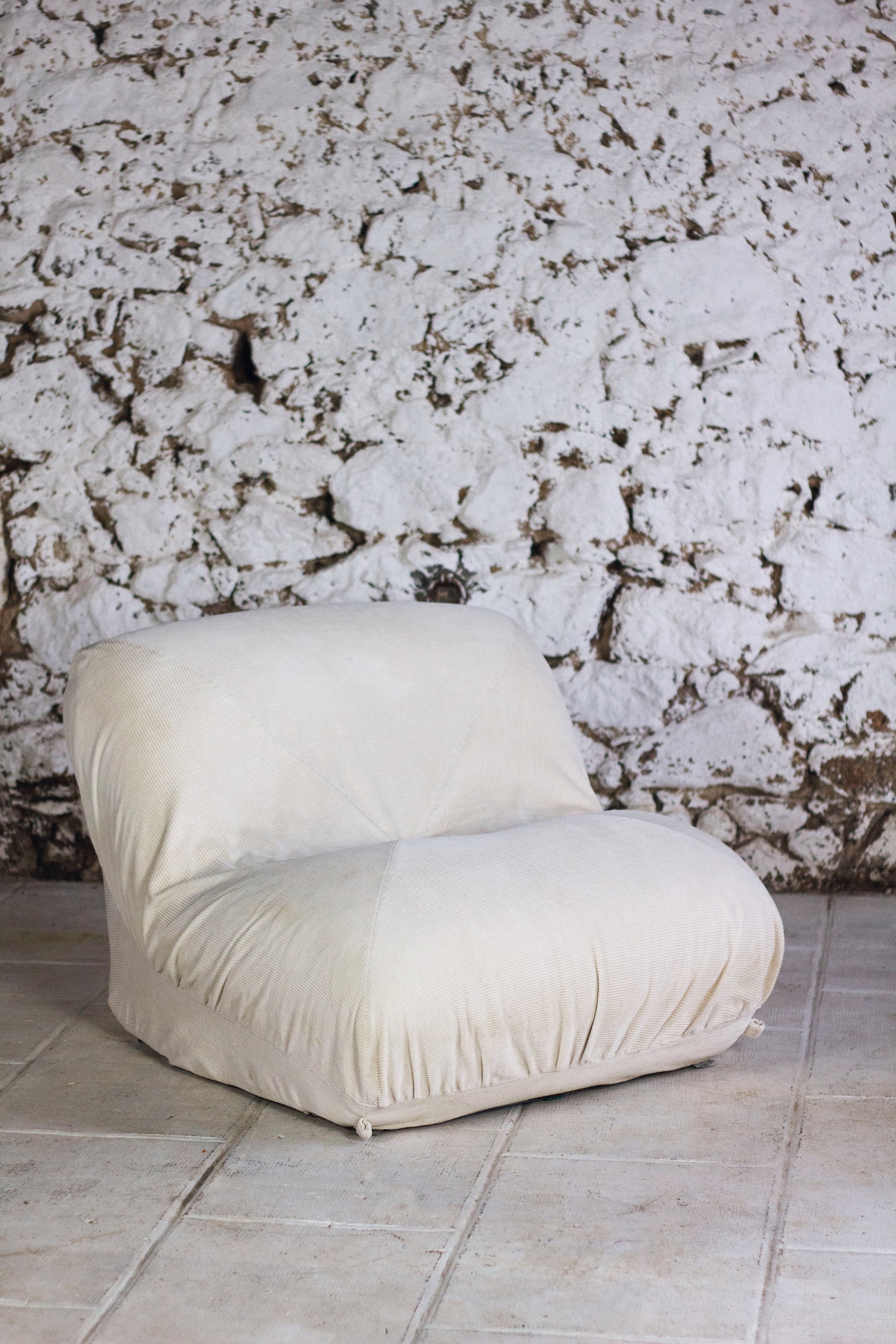 Chauffeuse "patate" velours côtelé écru pour Airborne, 1970