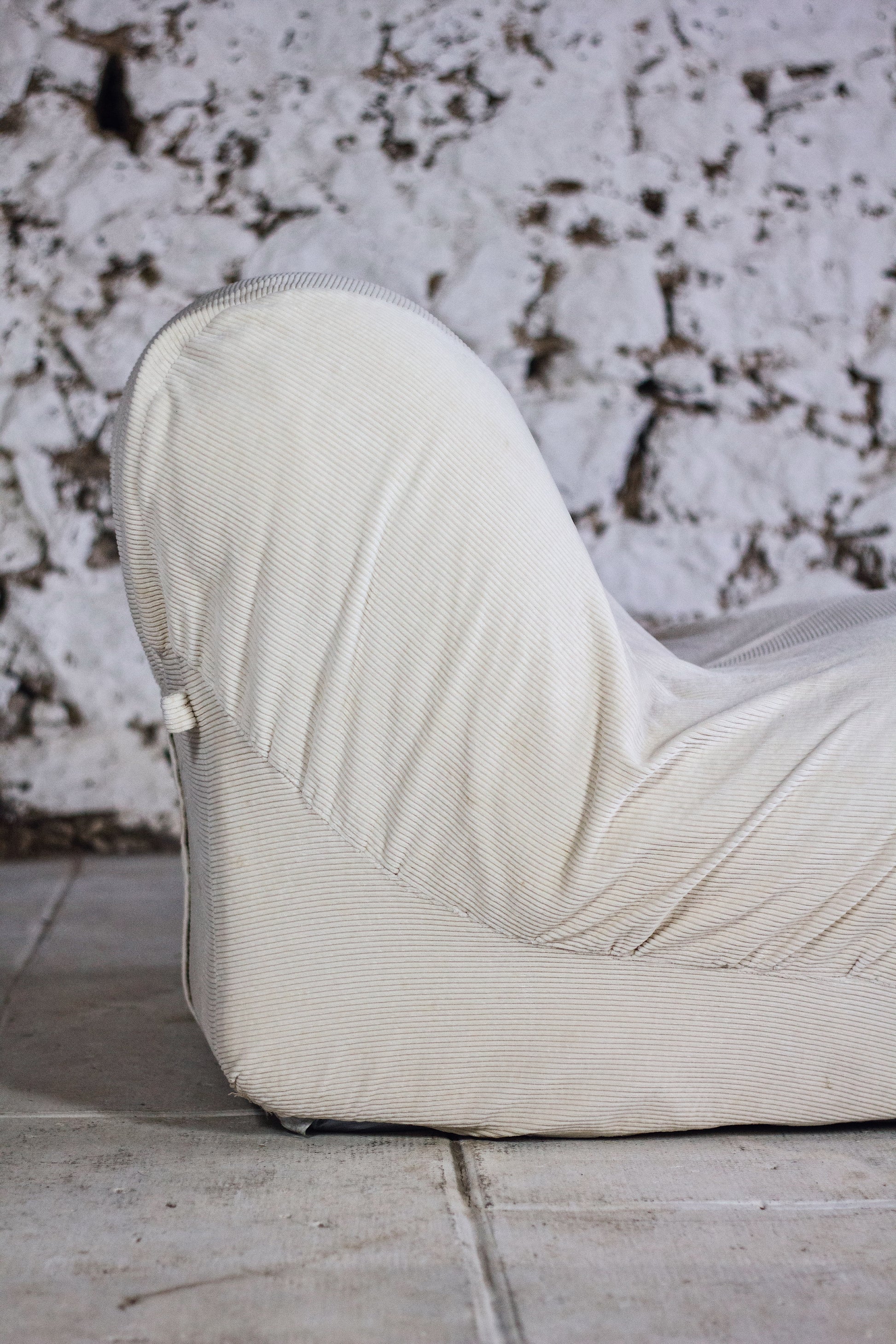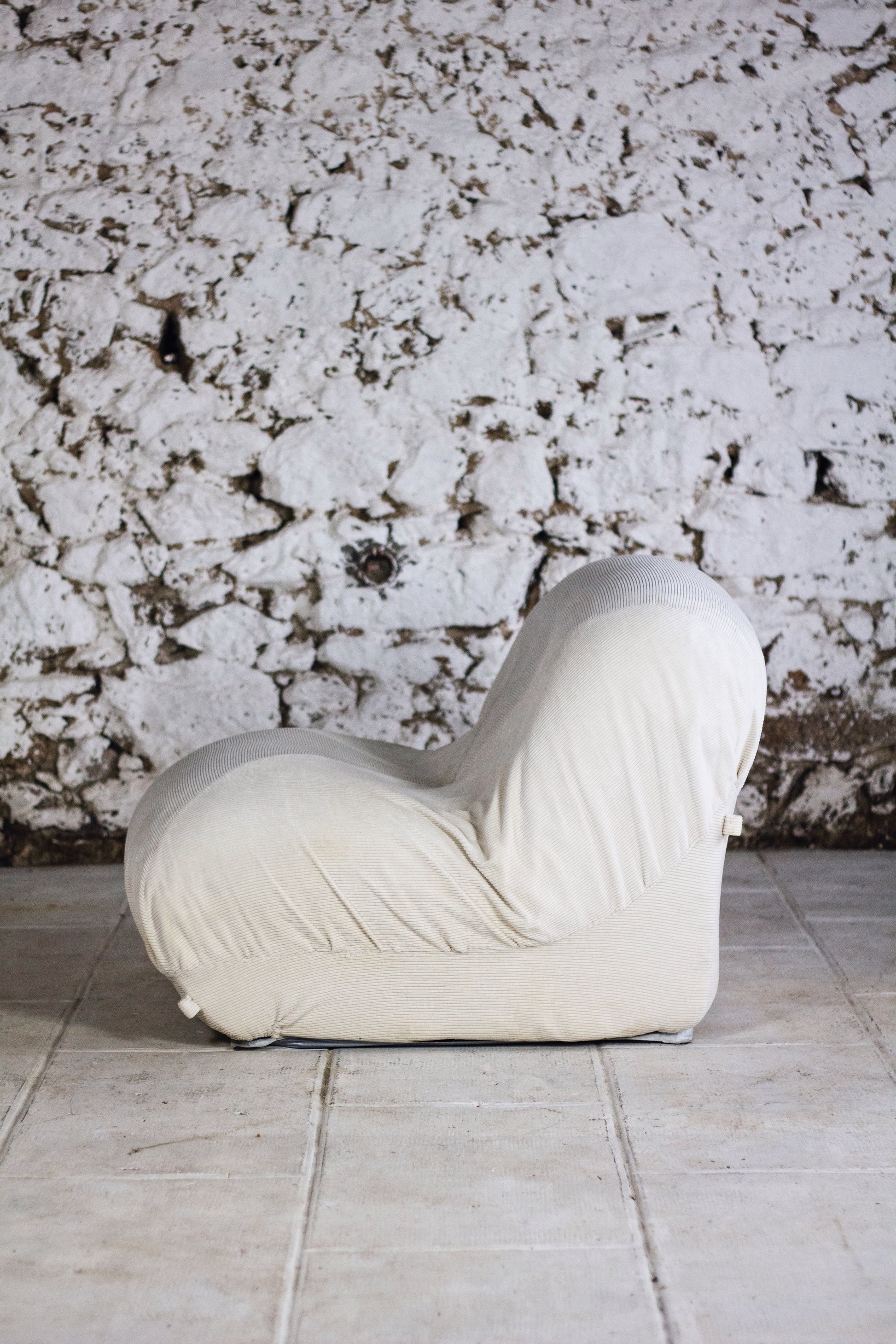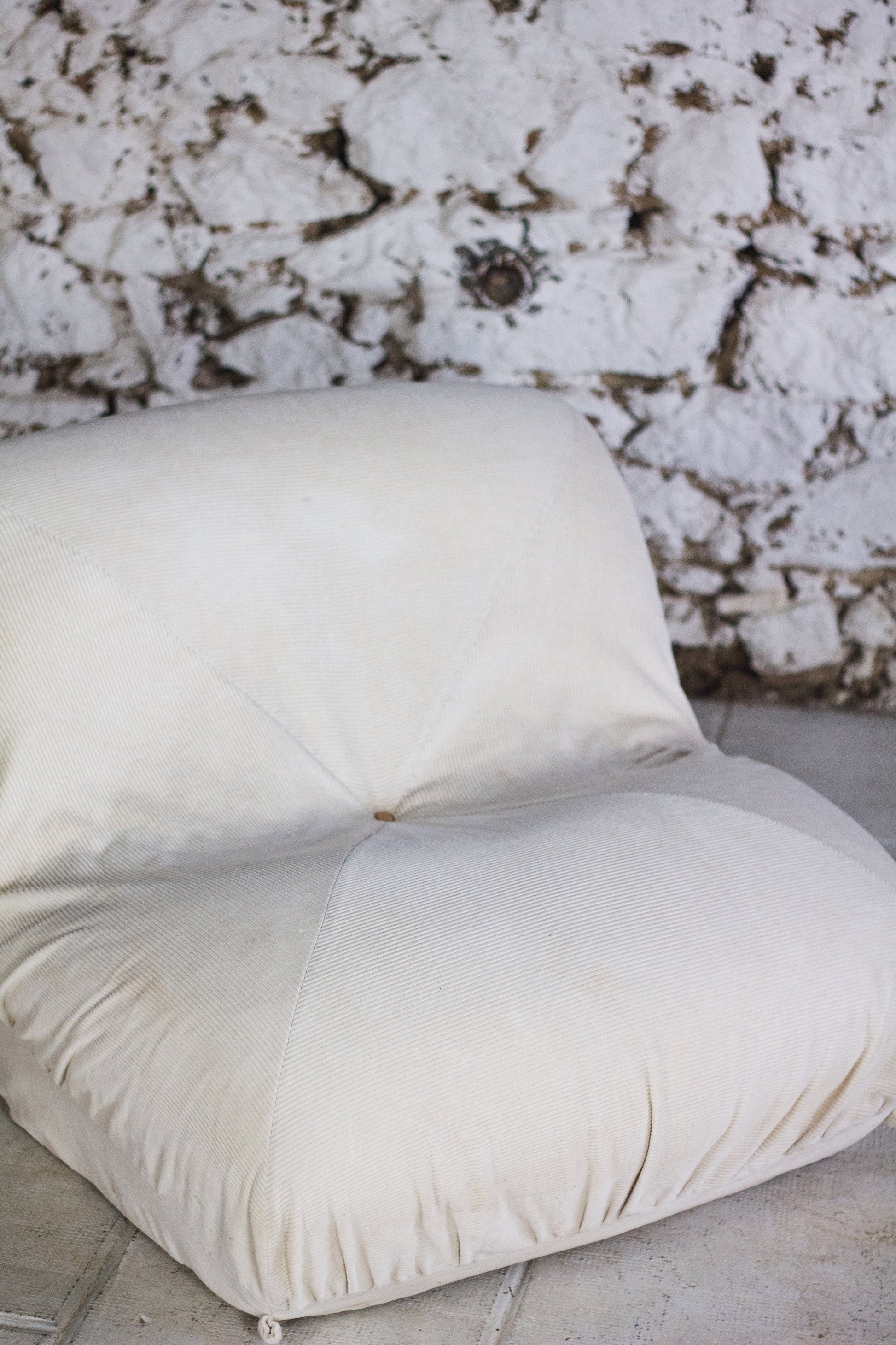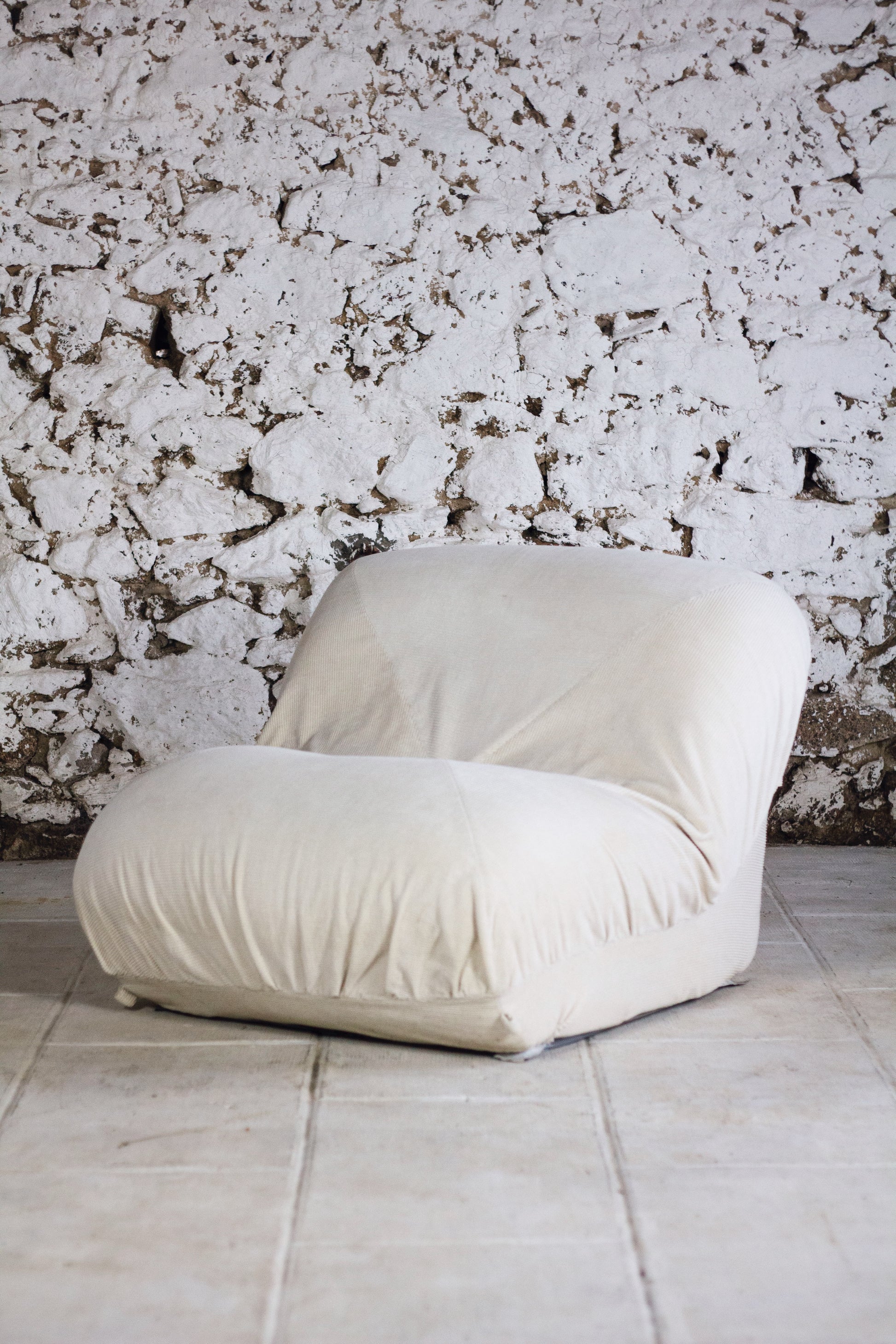 Chauffeuse "patate" velours côtelé écru pour Airborne, 1970
