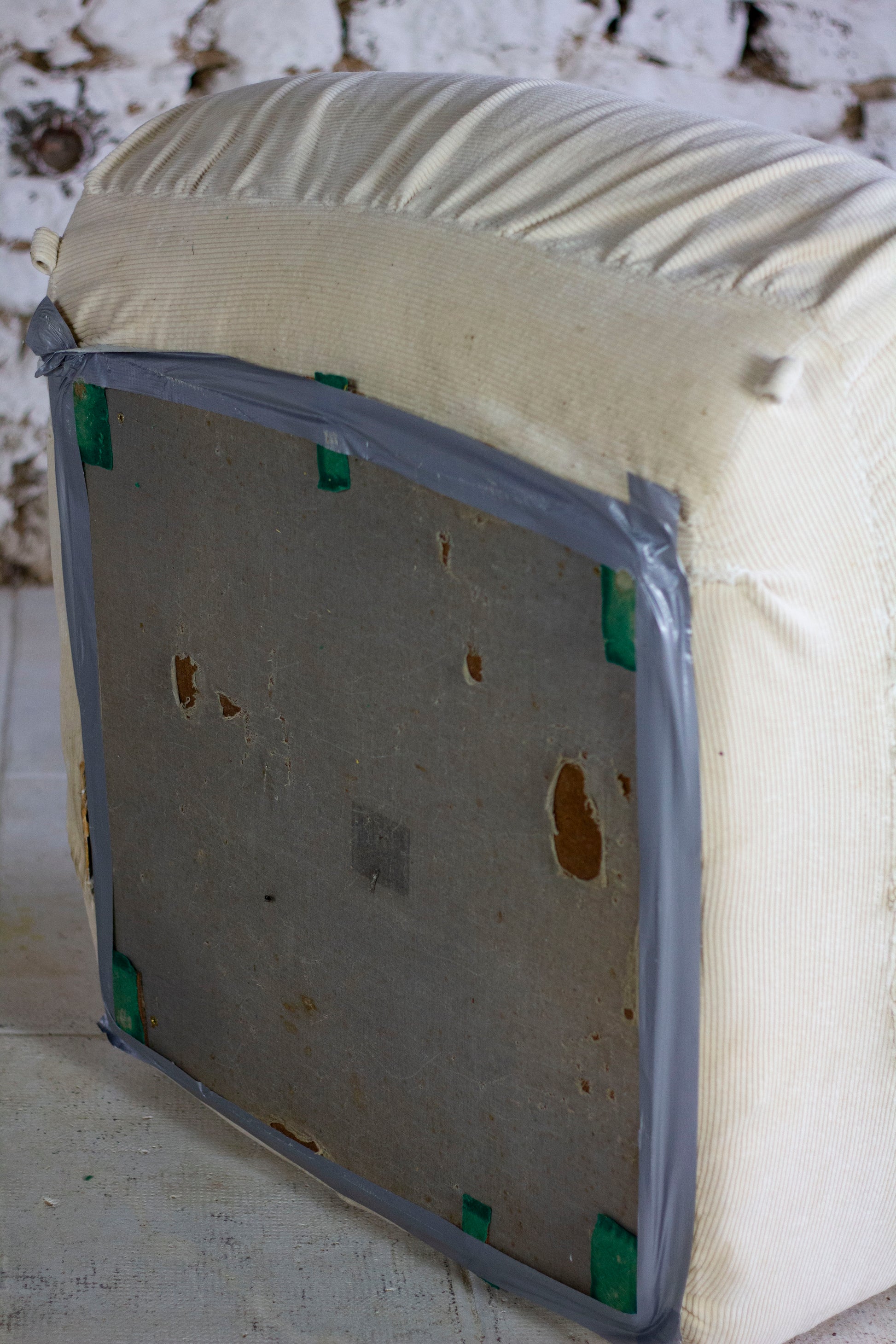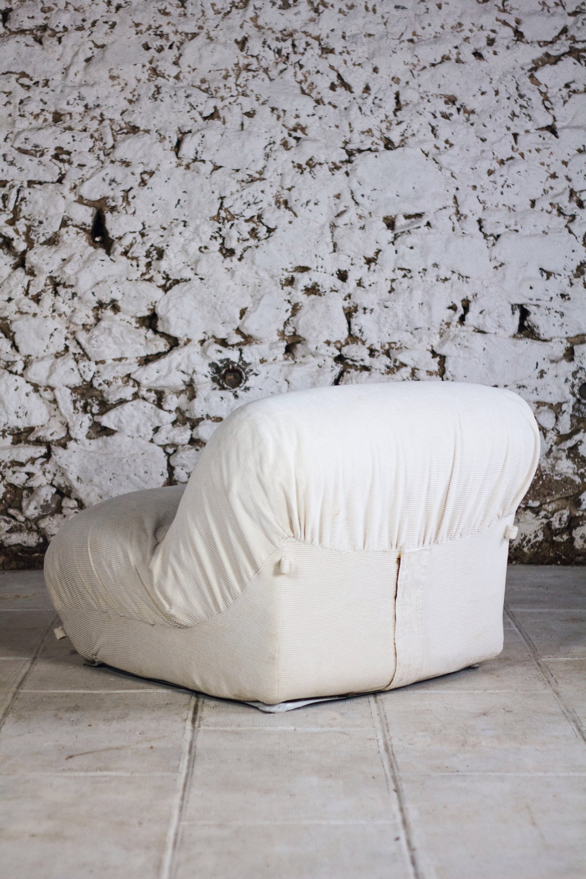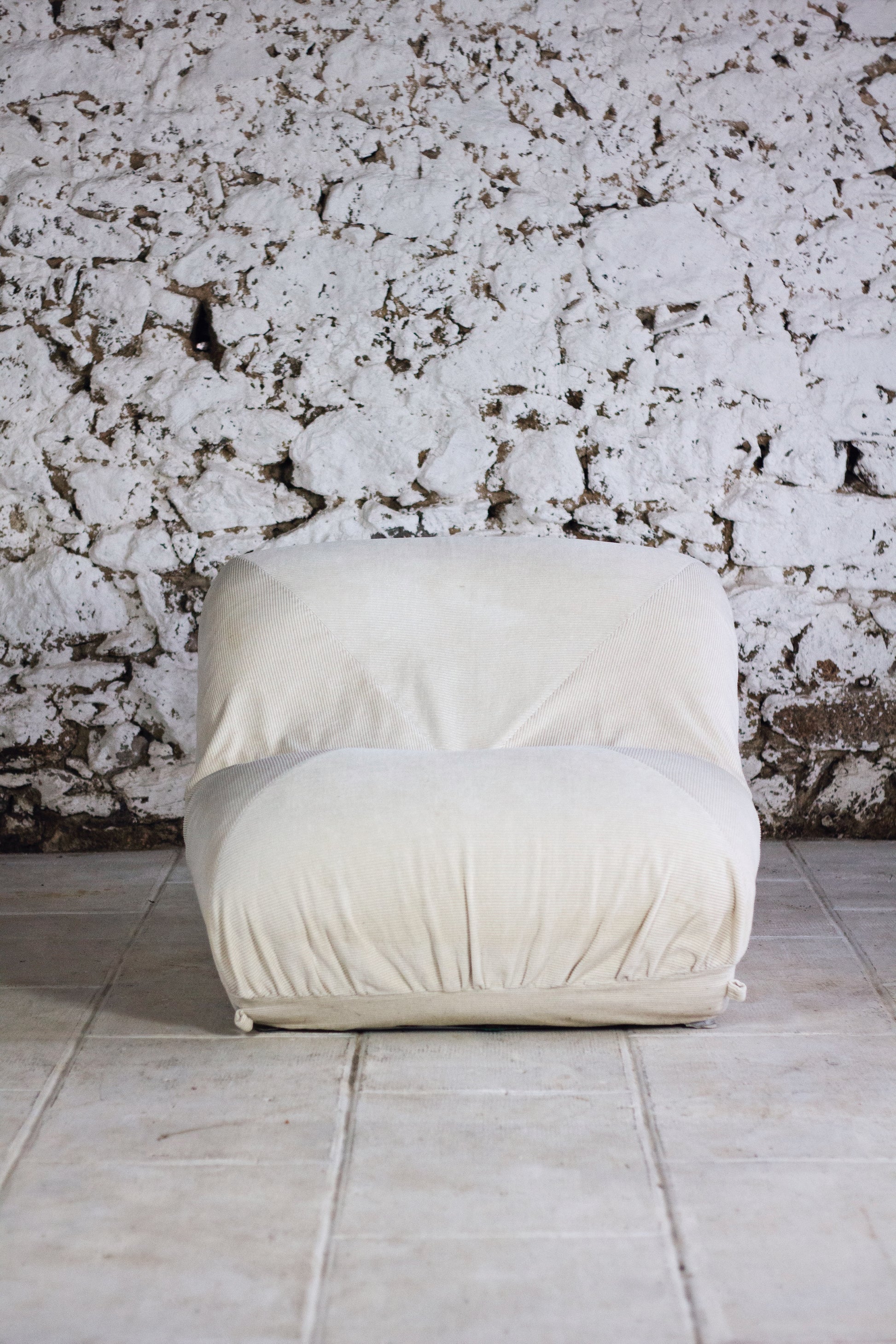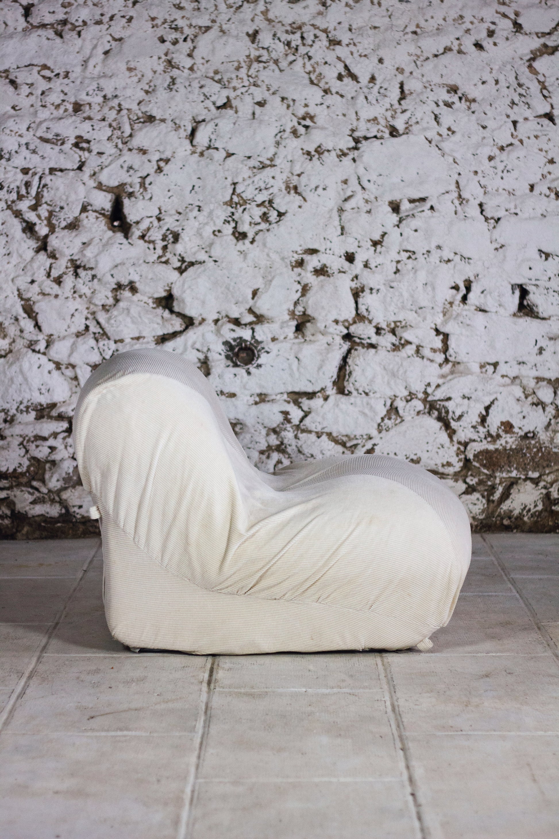 Chauffeuse "patate" velours côtelé écru pour Airborne, 1970