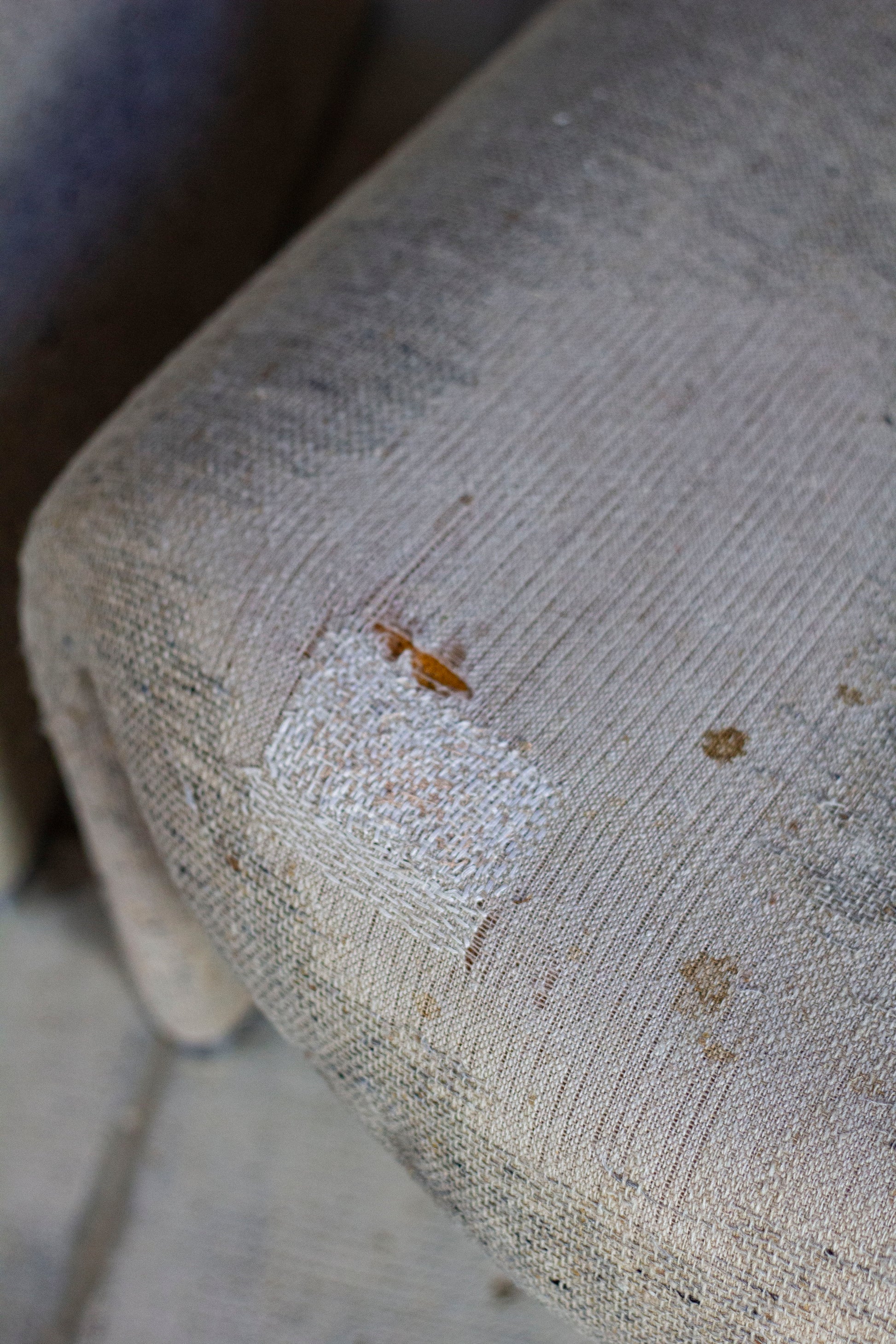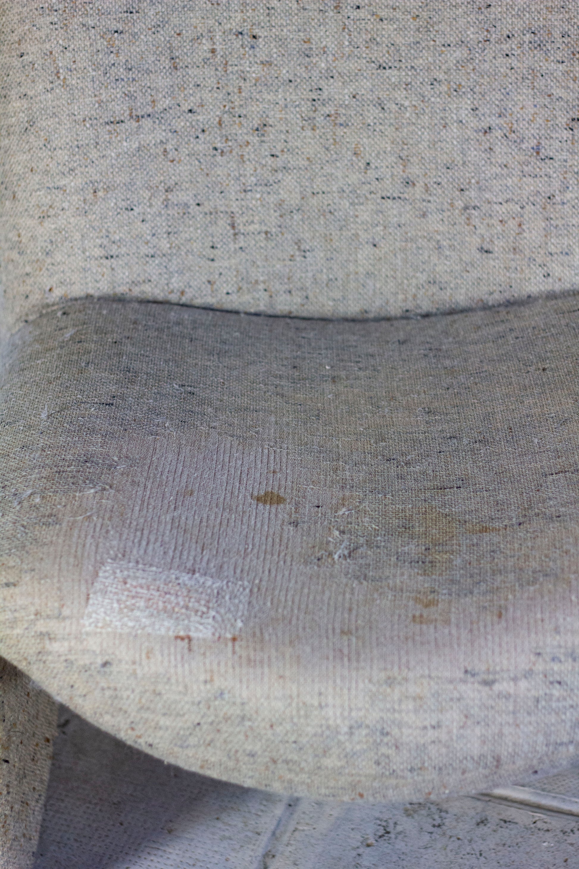La mousse des fauteuils est en parfait état. Le tissu d'origine est abimé. Ces fauteuils sont parfaits pour une personne souhaitant les retapisser à leur gout.