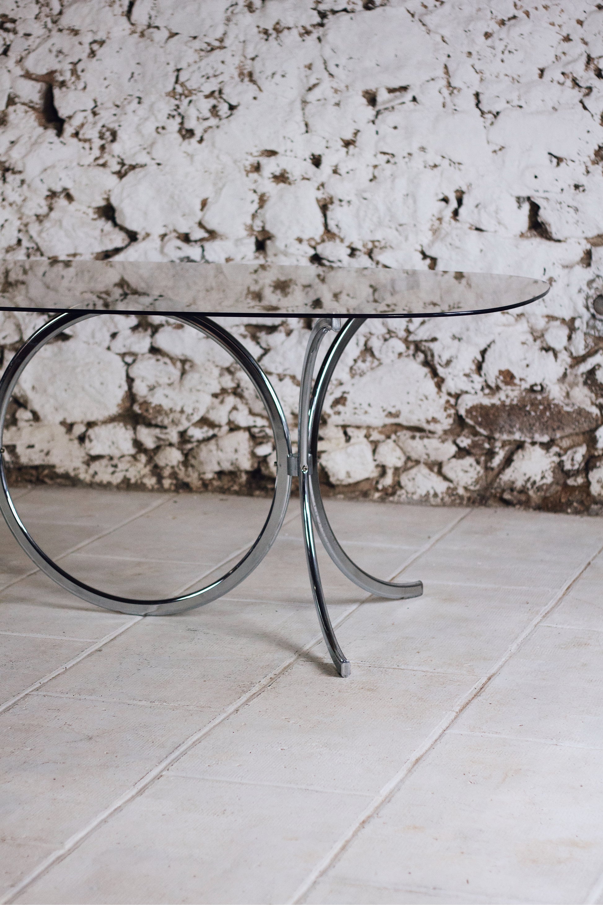 Table à manger chrome et verre fumé style Gastone Rinaldi, 1970