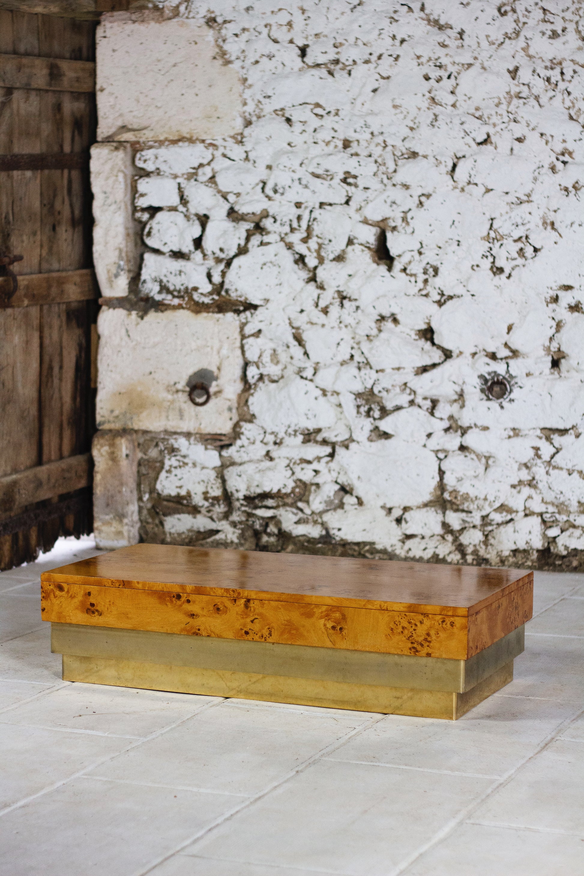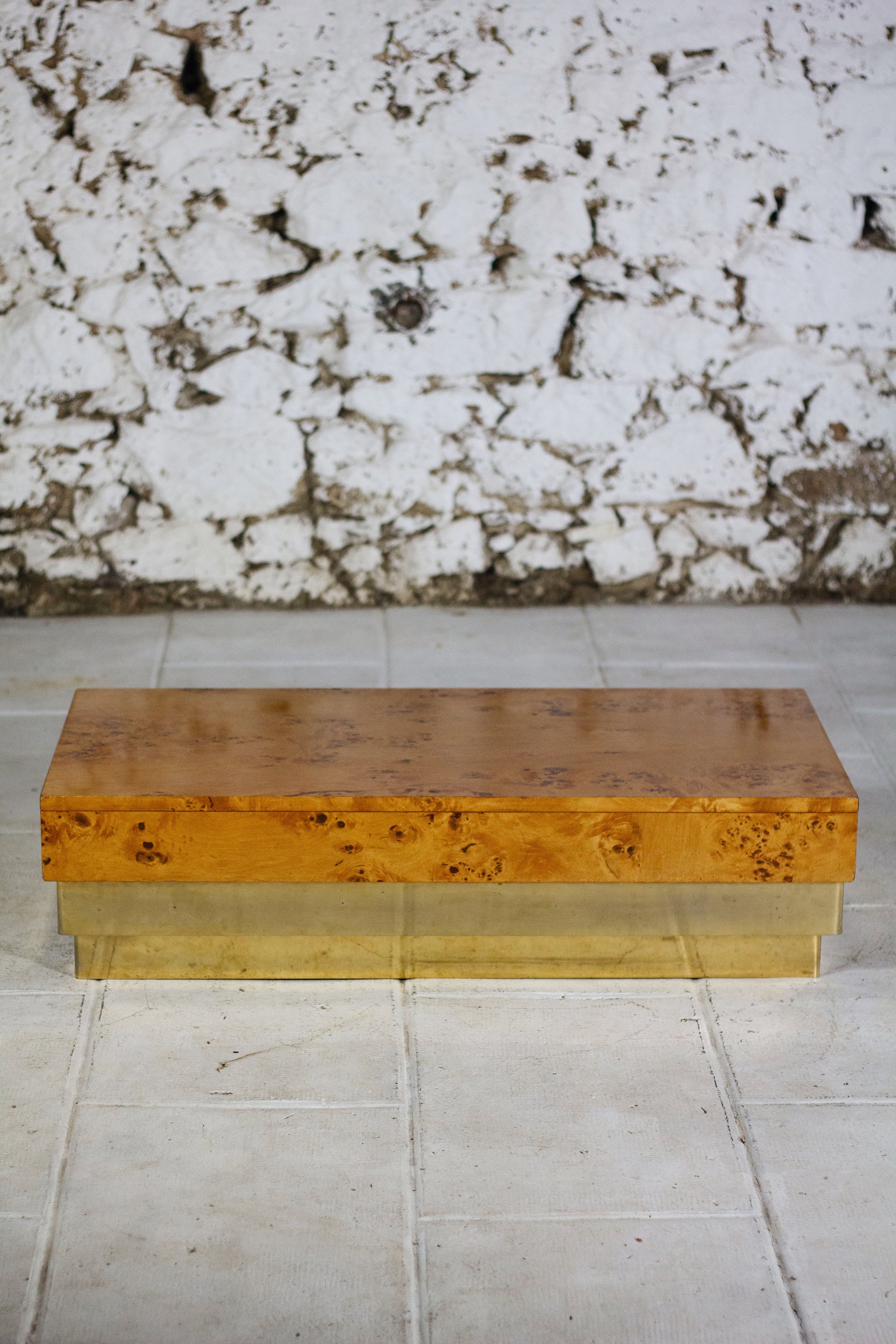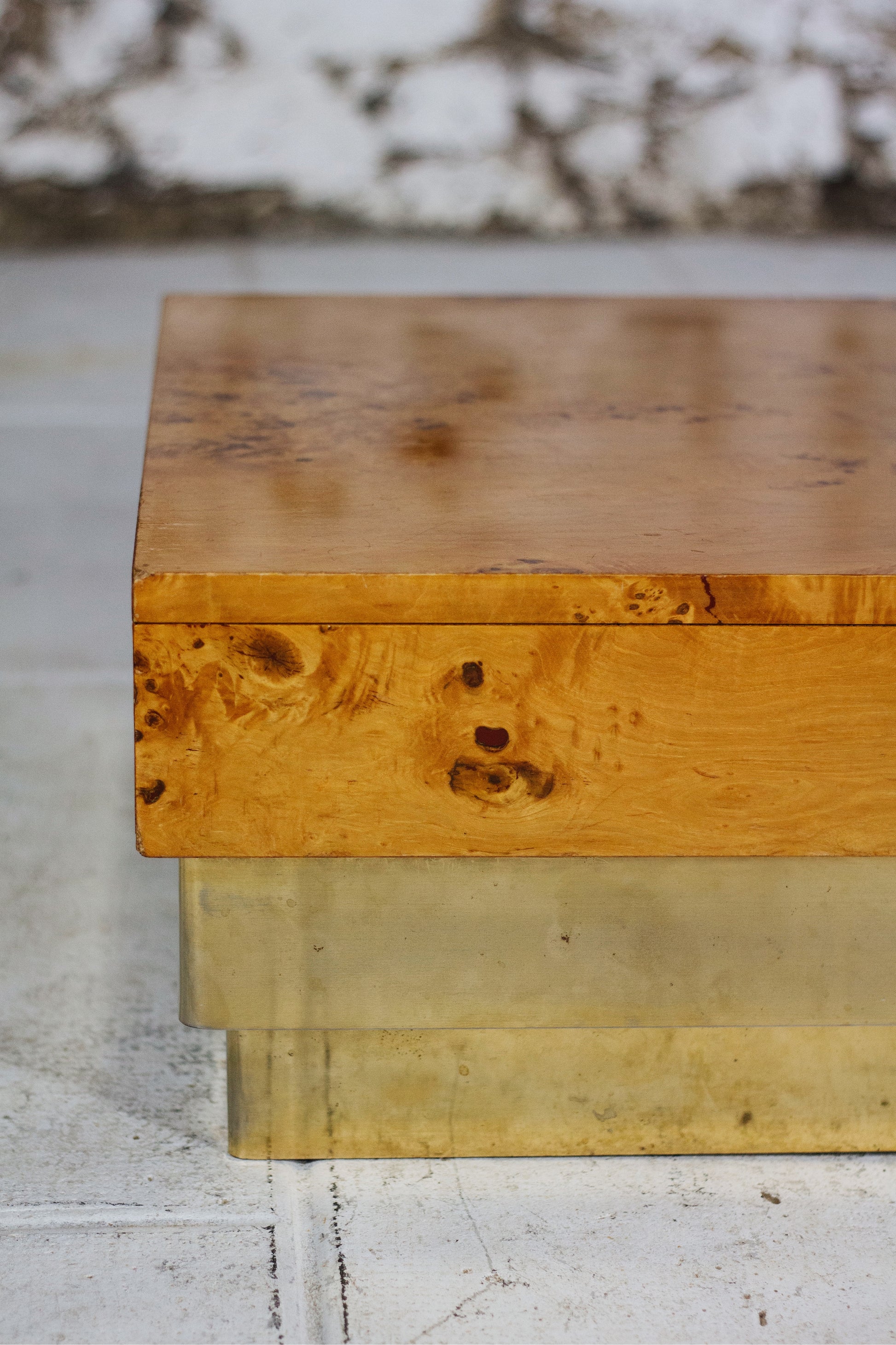 Table basse en loupe d'orme et laiton, 1970