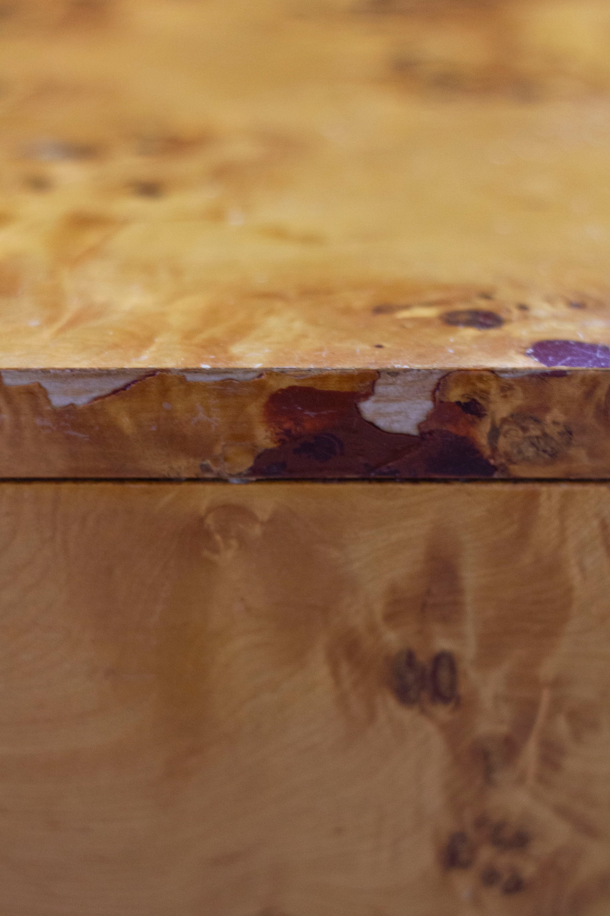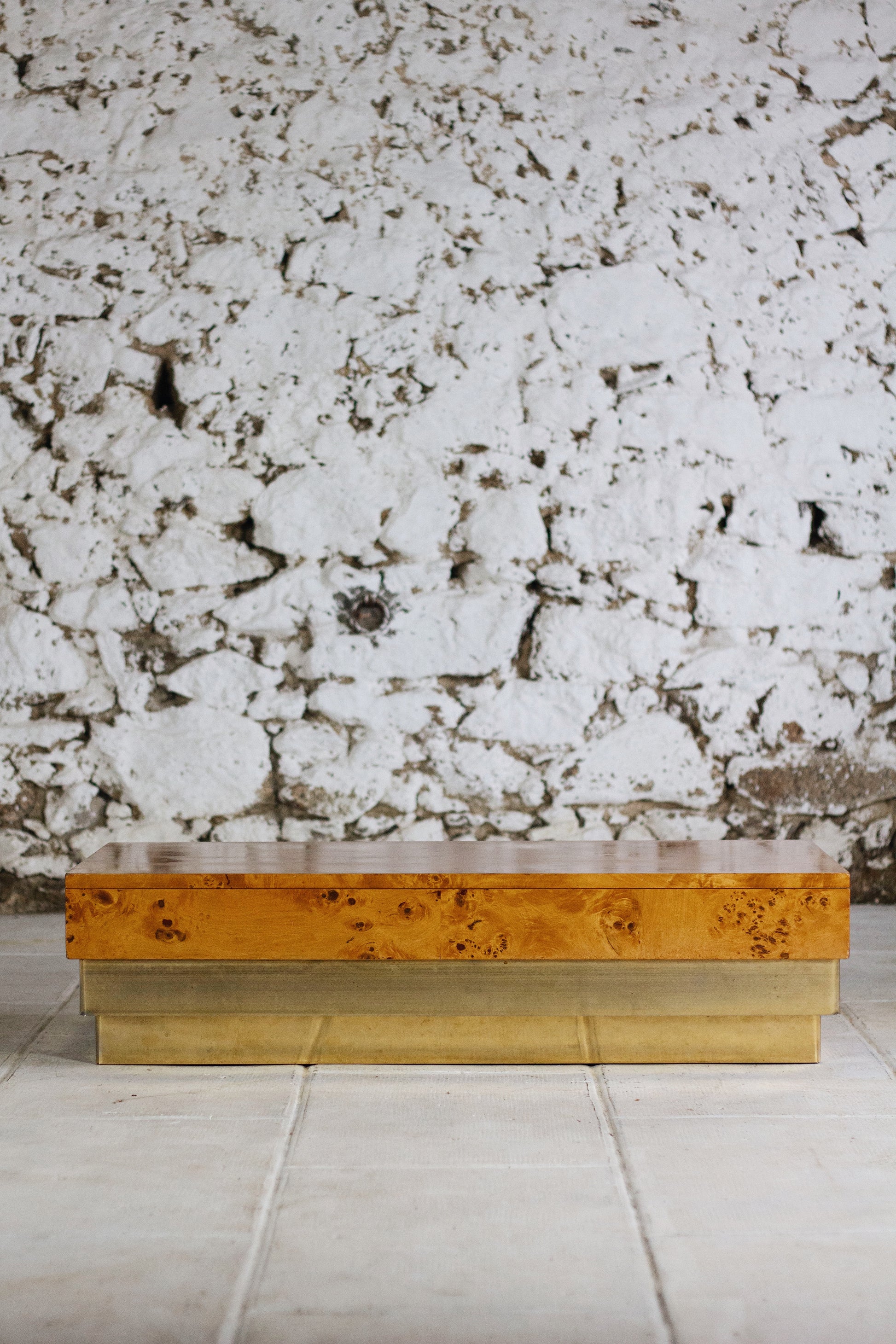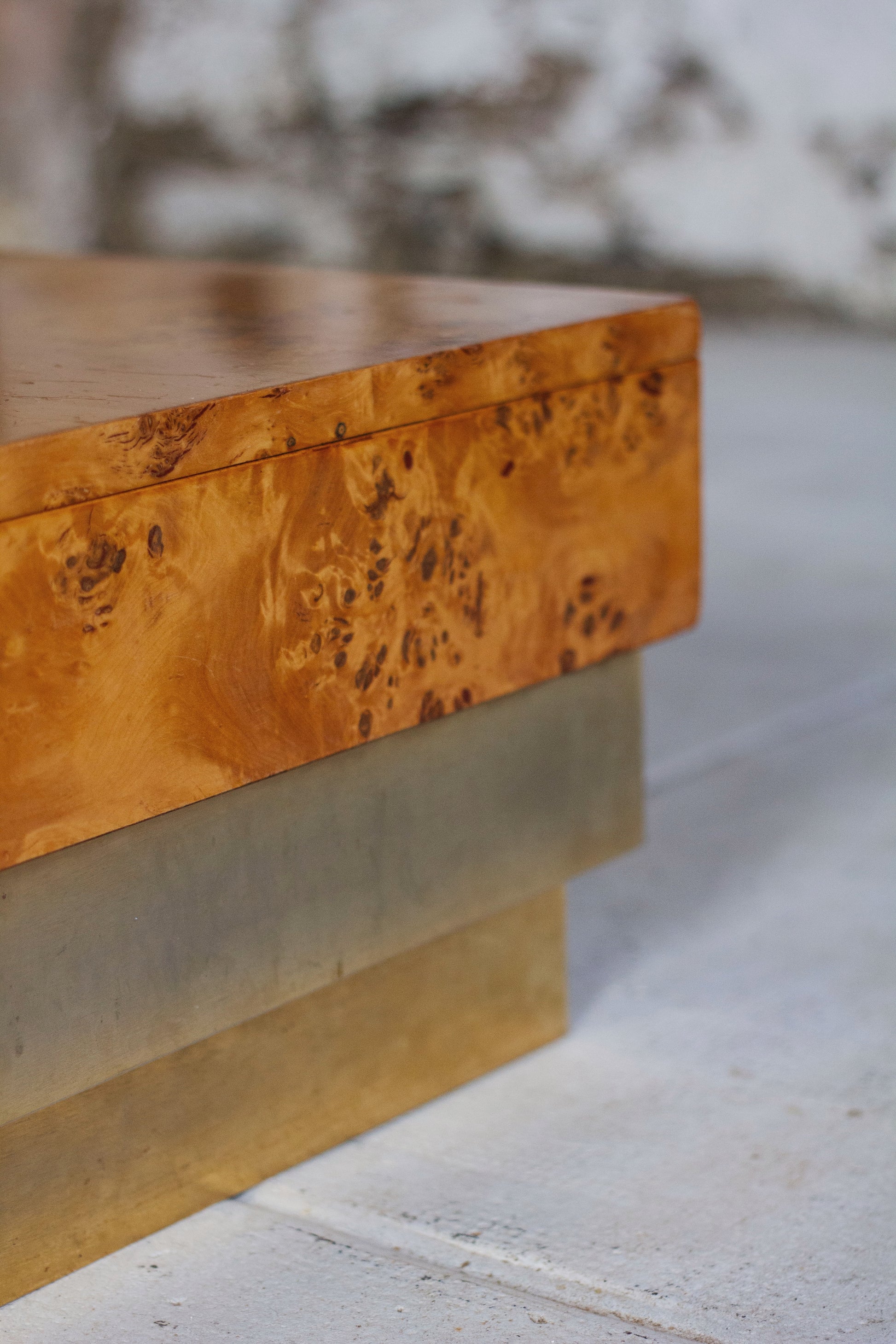 Table basse en loupe d'orme et laiton, 1970