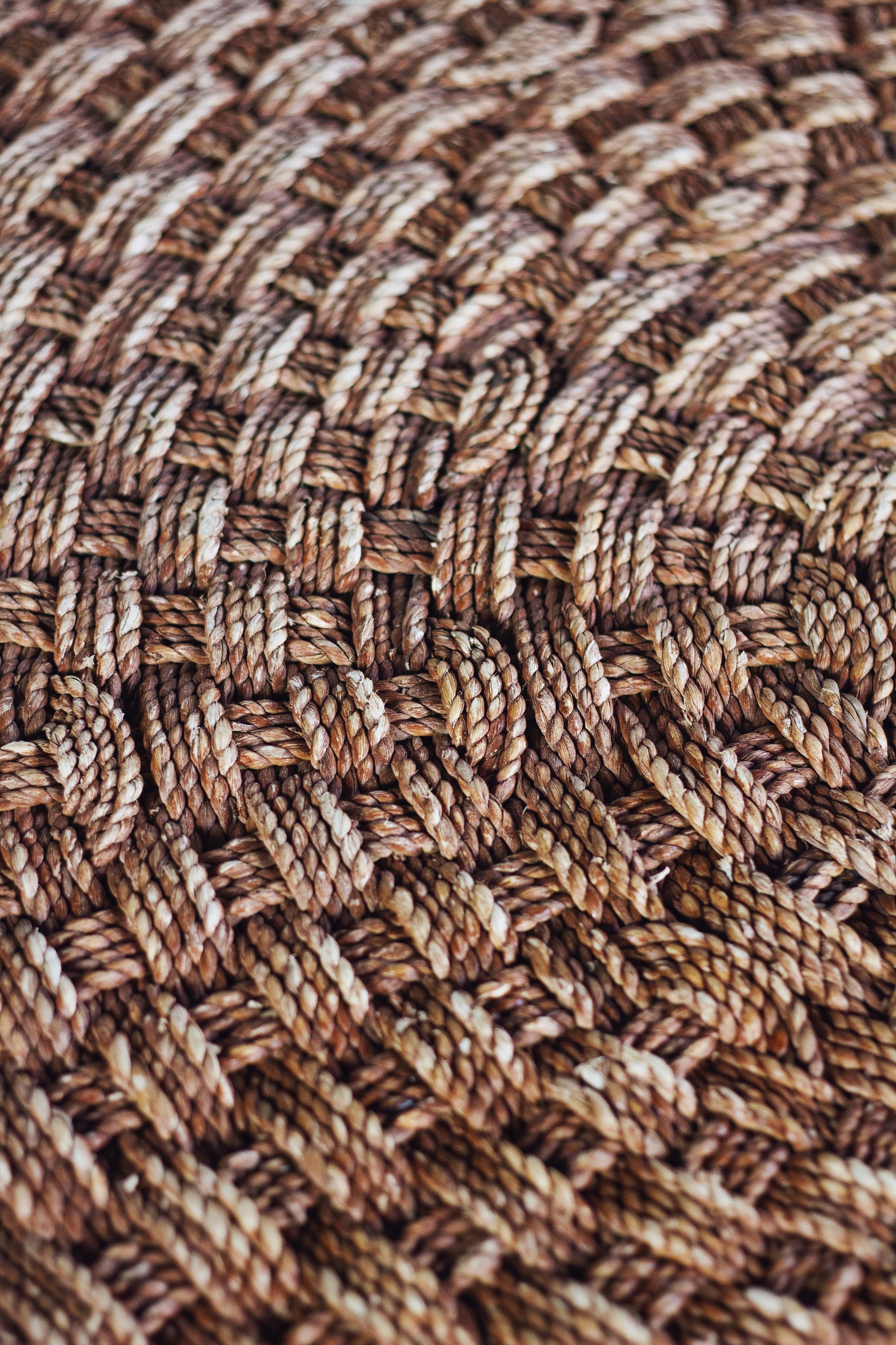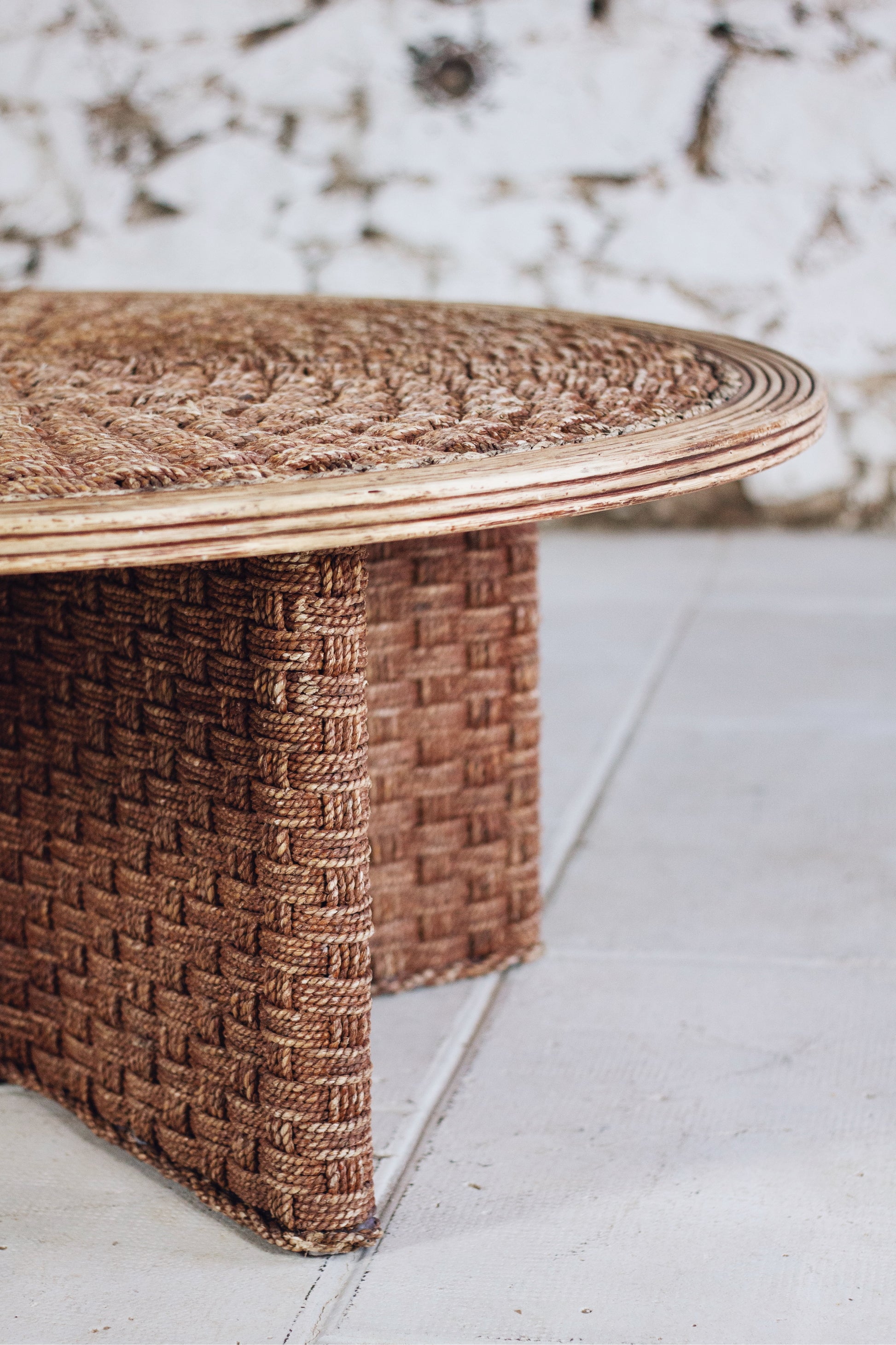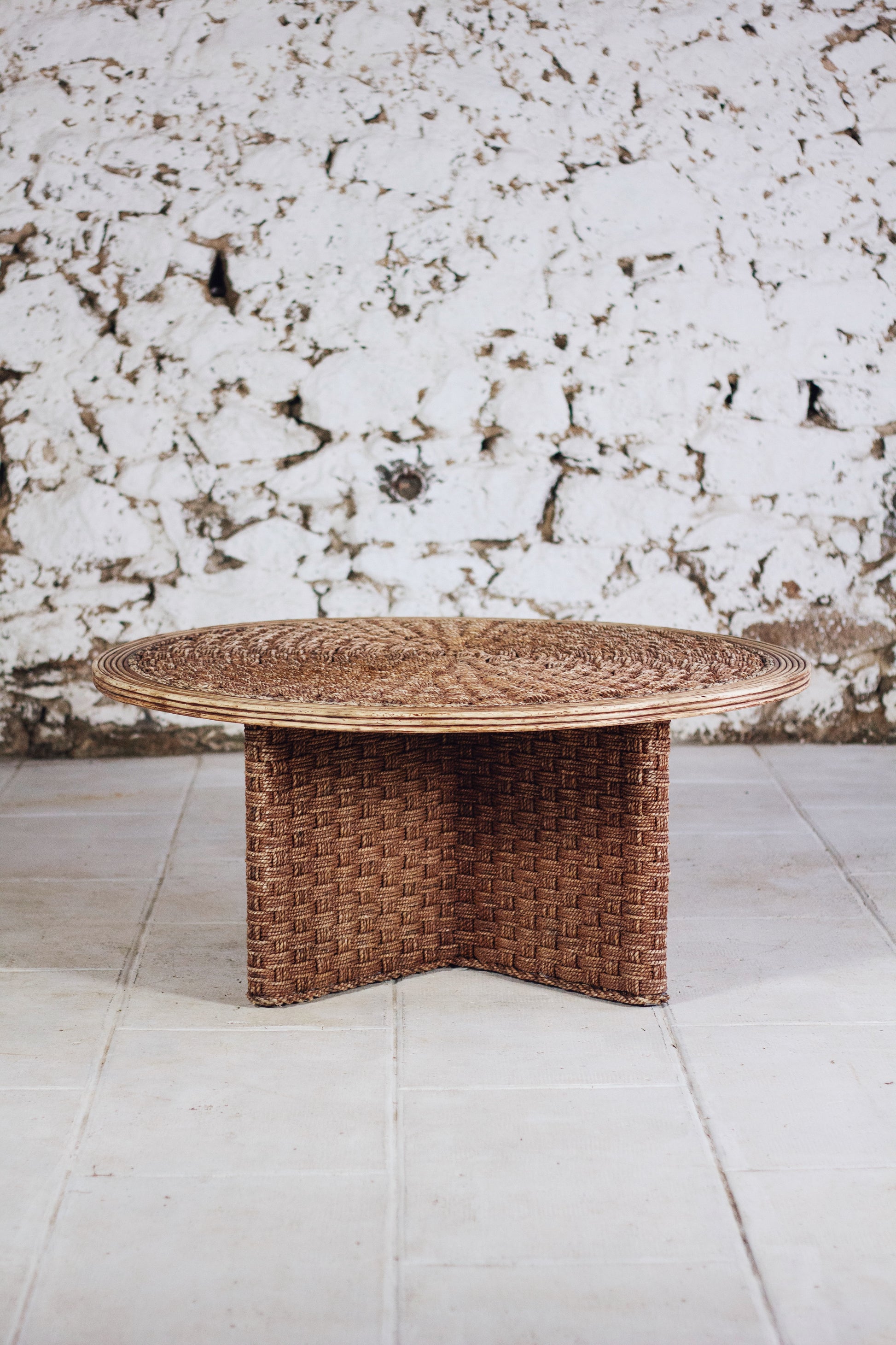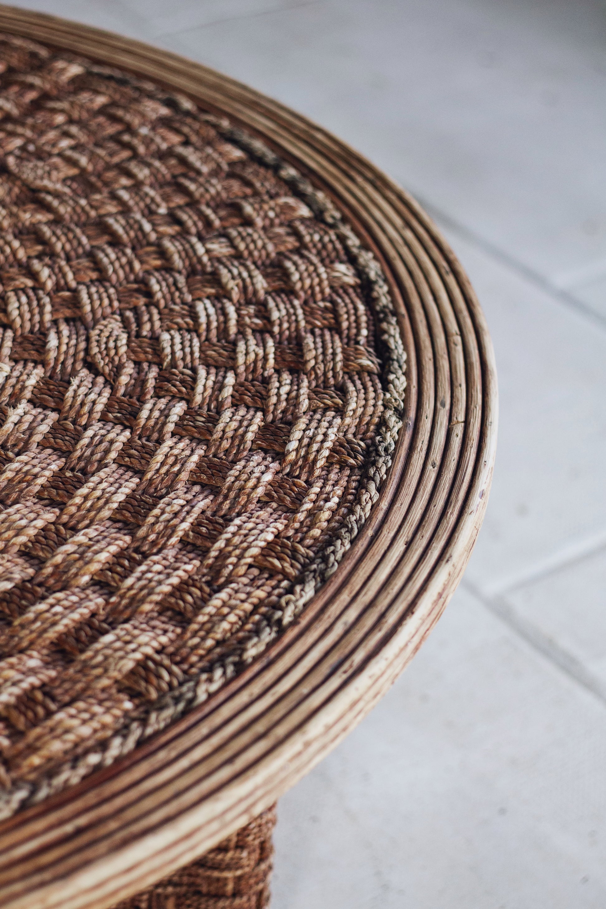 Table basse ronde en corde tressée et rotin, 1970