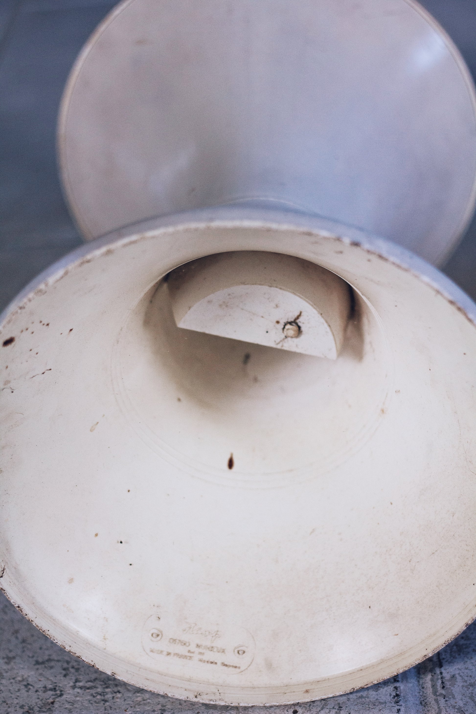 Tabouret vintage Tam Tam blanc conçu par Henry Massonnet en 1968, disponible en 3 exemplaires.